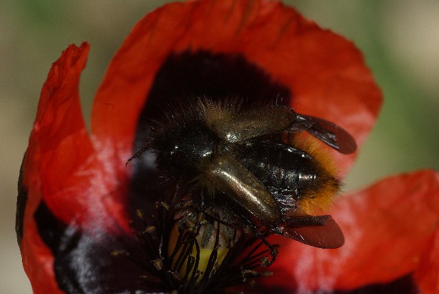 Lo si trovava un po' dappertutto, ma le maggiori concentrazioni le abbiamo trovate in ambienti aperti e disturbati, ricchi di papaveri come questo: