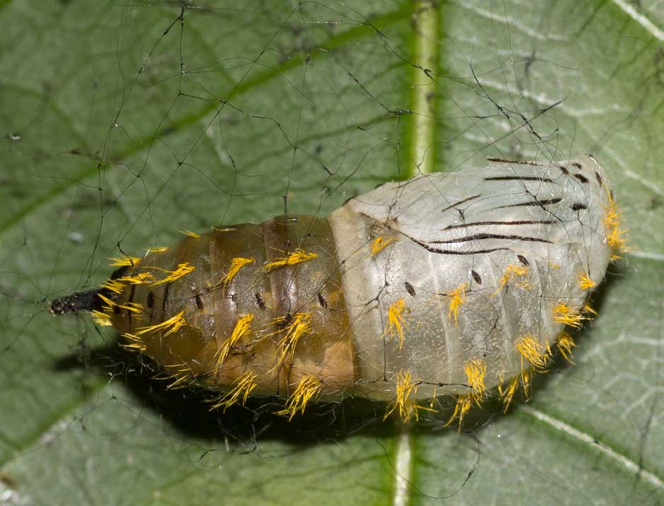 L'unica cosa che mi sento di dire è che in Europa pupe simili (con quegli inserti di setole) sono tipici dei Lymantriidae (Erebidae Lymantriinae secondo alcuni...)