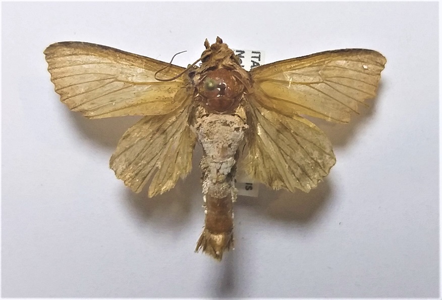 Continuo con le richieste di determinazione di eteroceri. Questo esemplare, oltre ad essere rovinato (anche in quanto prelevato da trappola a vino appesa su Quercus), è anche preparato male: lo preciso (anche se è evidente) perché, essendo le ali piegate verso il basso, presumo che le effettive dimensioni siano di almeno circa 5 mm maggiori rispetto a quelle indicate.