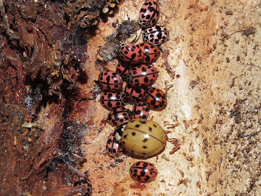Qui si vede bene la differenza di dimensioni tra Harmonia axyridis e le sue parenti più piccole, Oenopia conglobata (sempre che non abbia sbagliato la determinazione di quest'ultima!)