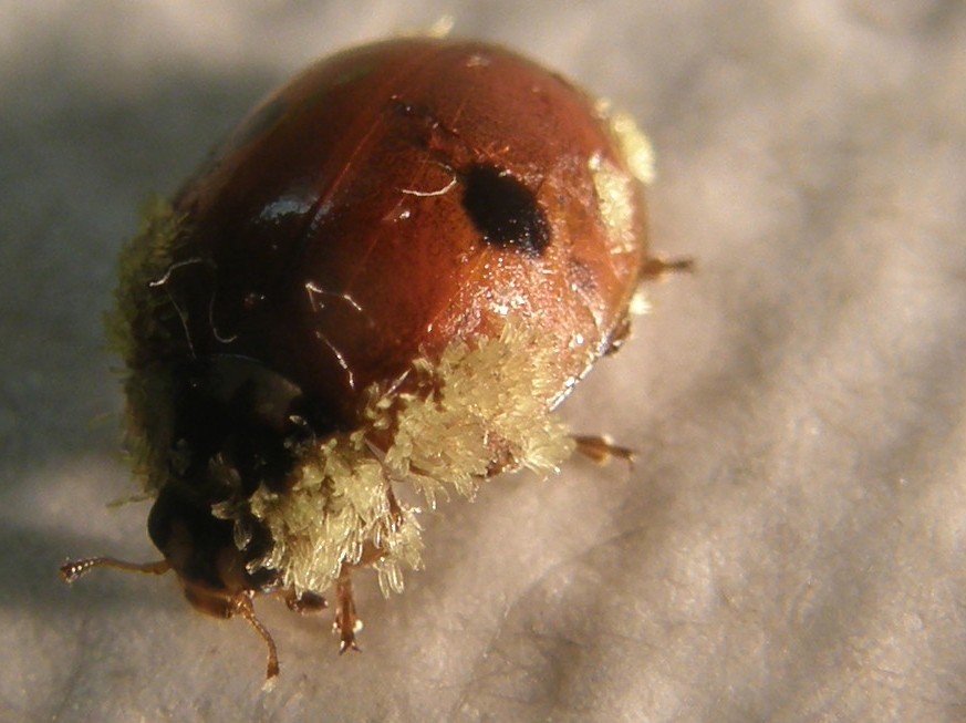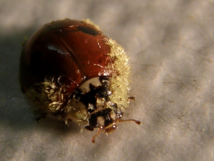 Dovrebbe essere un esemplare dell’onnipresente Harmonia axyridis, che a prima vista mi era sembrata ricoperta di polline.