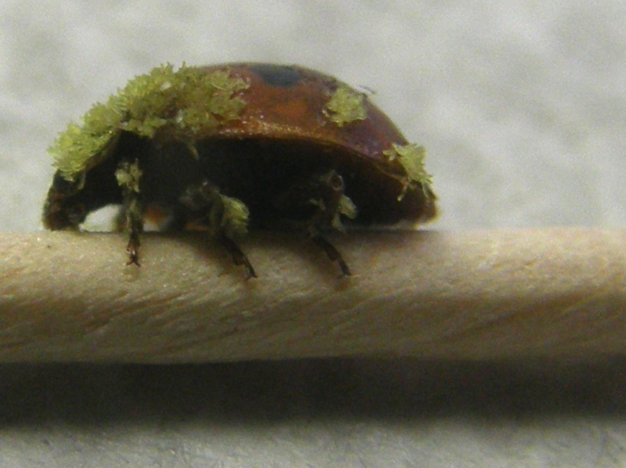 Scusate ma quei due punti bianchi sulla fronte sono abbastanza tipici di Adalia bipunctata: perchè no? Le escrescenze mi sembrano di natura chitinosa: hanno a che fare con strutture di acari? Funghi li escluderei poichè l'autore ha detto (FNM) che non riesce ad asportarli.