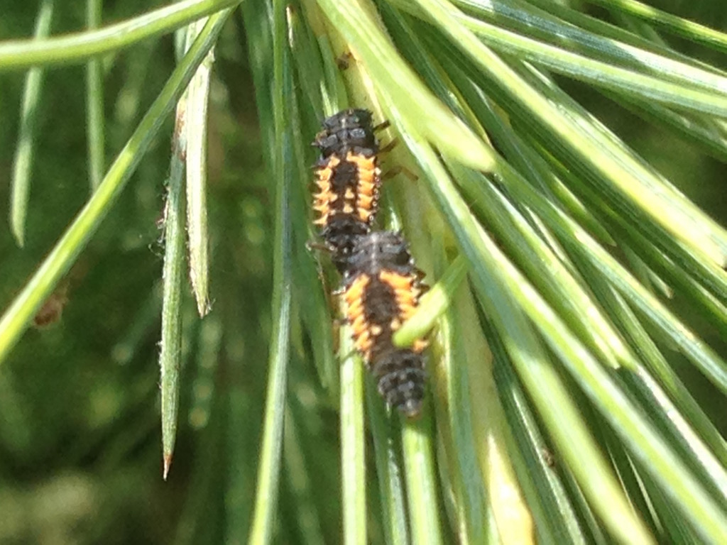 Queste sono larve, e come tutte le larve di tutti gli insetti non possono riprodursi perché non hanno ancora sviluppato l'apparato riproduttore. Le larve degli insetti fondamentalmente fanno solo due cose: mangiare e crescere. Alla fine del periodo larvale si impuperanno, nel caso delle coccinelle formando una pupa, o crisalide, attaccata con un peduncolo ad un substrato, come una foglia, un rametto, ecc., quasi immobile (se disturbate, possono contorcersi un pochino), in cui, nel giro di alcuni giorni, avverrà la trasformazione in insetto adulto.