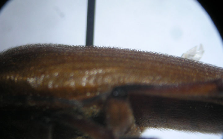Eccomi!..., posto la foto del lato ventrale ed un altro ingrandimento della pubescenza elitrale; vediamo un po cosa ne esce  .  (gli sterniti sono "color rhizotrogus"  )