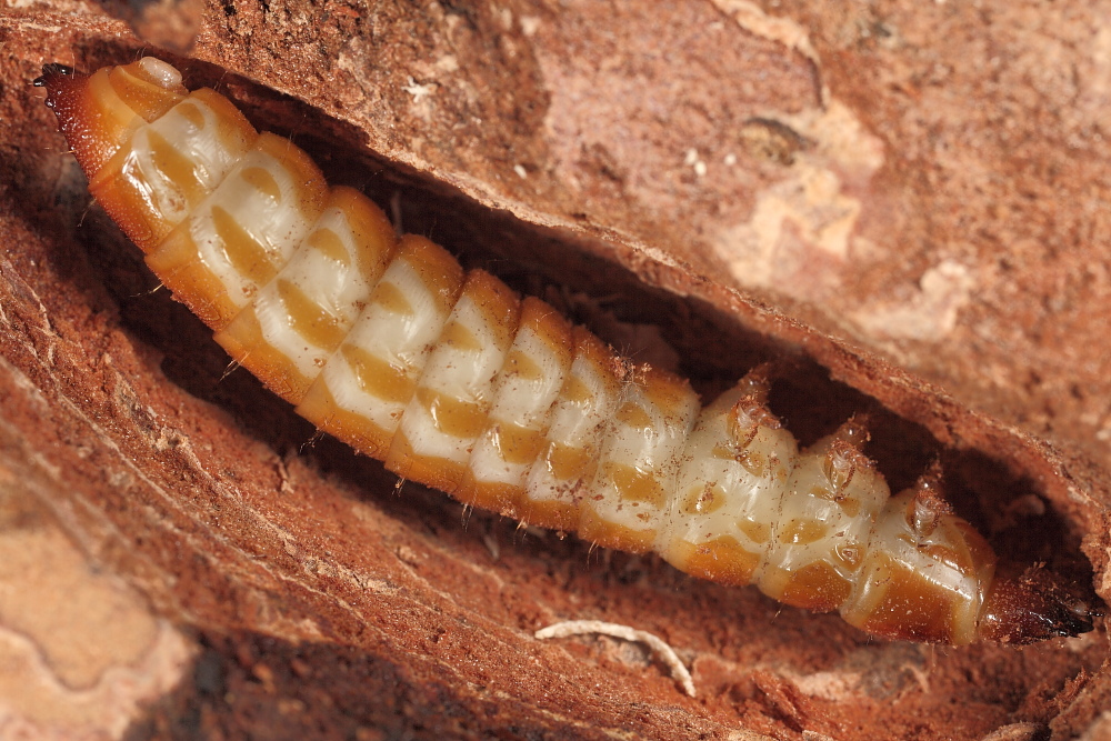 Squartando un vecchio ceppo di pino silvestre molto marcio, ho trovato due larve molto grosse di elateridae. Uno era nel legno ormai ridotto ad un ammasso di rosura, e l'altra era nella corteccia. Ho allevato ancora larve di questa familia ma mai cosi grosse.