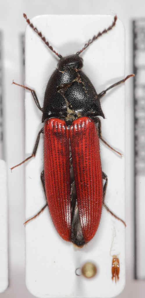 incredibilmente nessun Ampedus risulta segnalato ufficialmente dell'Elba. Questo sembra essere Ampedus cardinalis (Schiodte, 1865) dal colore, da quel che riesco a vedere della punteggiatura del pronoto e dall'edeago con parameri allungati.