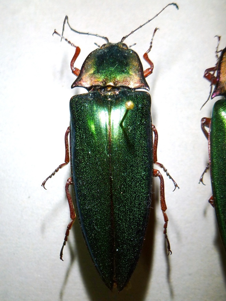Julodis ha scritto: Valerio ha scritto: Era determinato come Camposternus regalis, Tailandia, specie che su internet però non sono riuscito a trovare. Ma come, se c'è pure sul nostro Forum? Campsosternus regalis!E' vero, non lo avevo cercato quì (ho finalmente l'autore), ma sul resto di internet continuo a non trovarlo. Ci sono l'auratus il gemma il mirabilis per esempio, mentre di regalis mi esce il Lycoreus che è tutta un'altra bestia però. Empiricamente se l'auratus è più dorato questi verdi li considero allora regalis Fleutiaux, 1918