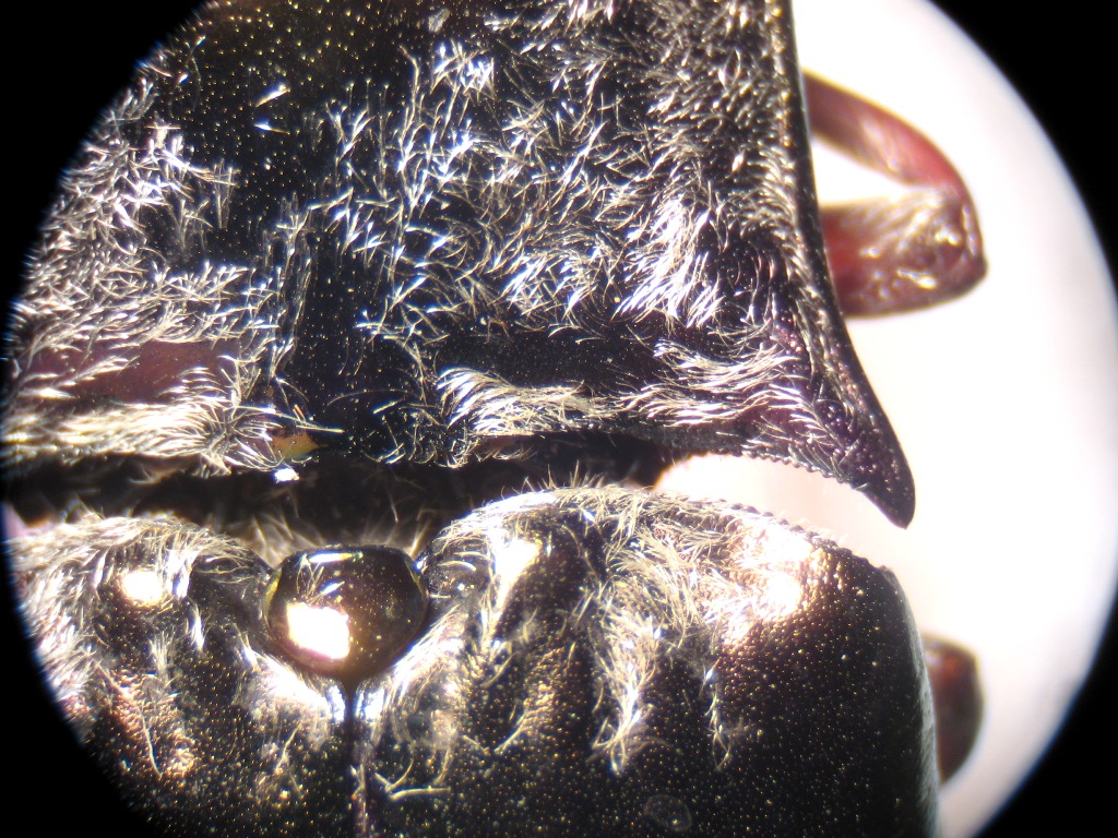 Uno di due grandi esemplari Thailandesi, l'altro (che si vede leggermente di lato a questo) è quì Le ho tenute insieme finora, ma fotografandole mi sono accorto di diversi particolari che le differenziano, pelosità, particolari con colori diversi nonostante colorazione di fondo bronzea identica, dentellatura pronoto e elitre. Sapete dirmi cosa sono? L. = 33 mm Habitus con colorazione bronzea e setole spesse e lunghe Bordo anteriore del pronoto non ribordato. Colorazione uniforme del pronoto, bordo posteriore e bordo anteriore delle elitre dentellato. Apice elitrale Visione latero ventrale Zona ventrale del protorace bronzea |