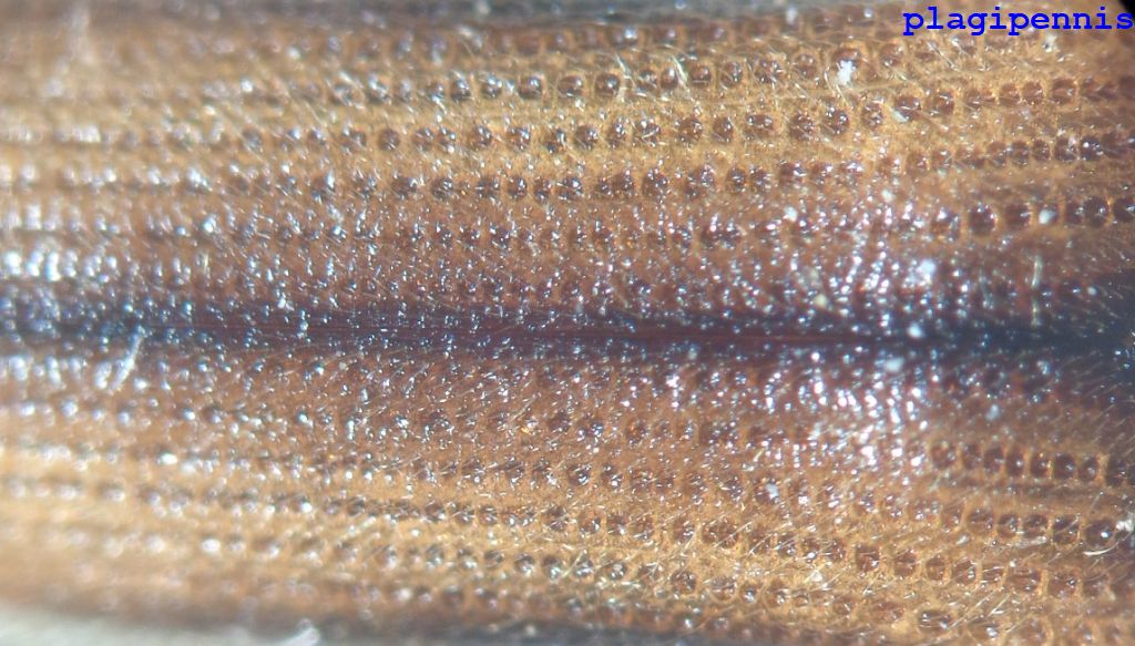 Ho confrontato questi maschi con un maschio di plagipennis, questo viewtopic.php?f=251&t=80888&hilit=Athous+plagipennis e noto differenze nella colorazione (stria suturale non oscurata), nello scutello, nel 3° art. antennale più tozzo e allargato all'apice rispetto a plagipennis) ma la differenza principale, netta, sta nell'aspetto molto diverso delle strie elitrali che qui sono scavate e impuntate e che posto sotto assieme all'edeago (molto piccolo!) dell'esemplare in alto di questo topic e suoi altri caratteri.