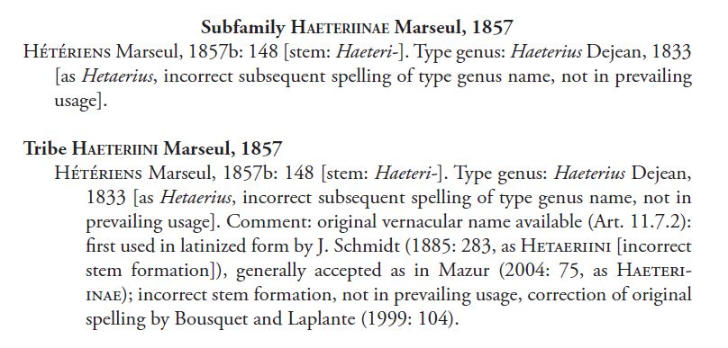 ho provveduto a correggere il Catalogo Sistematico degli Histeridae