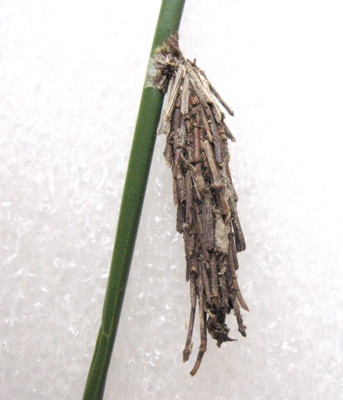 I maschi delle Canephora presentano degli astucci con rametti che si divaricano nella parte alta dell'astuccio, come questo: