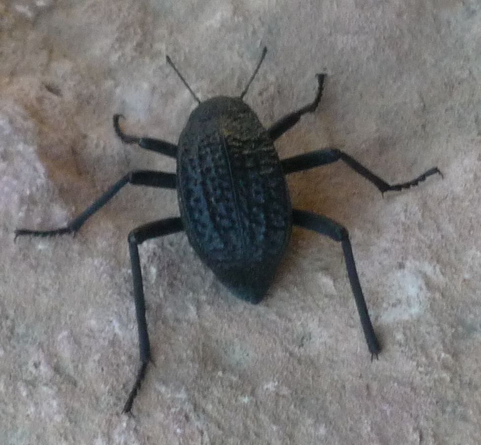 Questa primavera mia moglie è stata in Giordania; riguardando le sue foto ho trovato anche questi tre scatti del 4/05/2010 ad un tenebrionide che passeggiava tra le rovine di Jerash. Non so indicare le dimensioni, ma non doveva essere molto piccolo dal momento che sono fatte con una macchina fotografica digitale compatta.