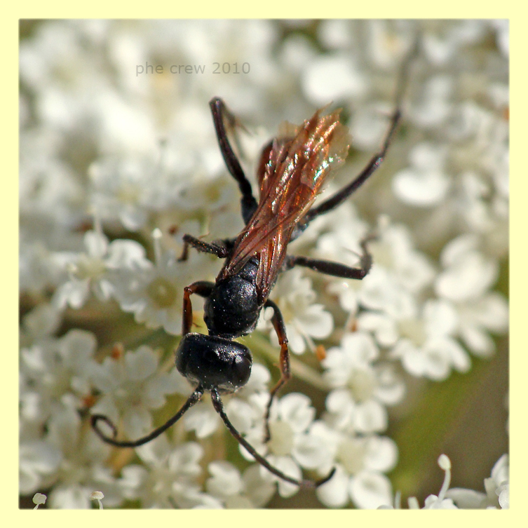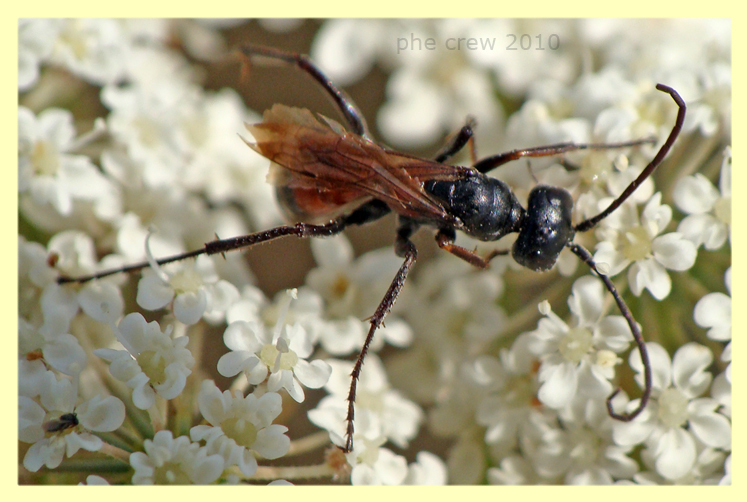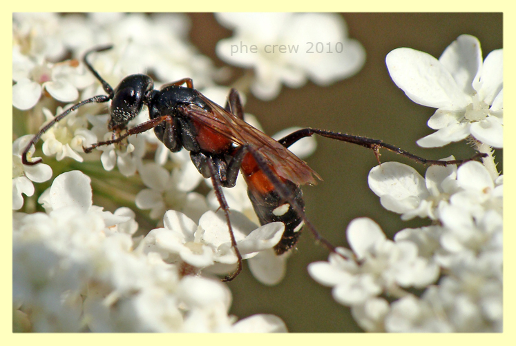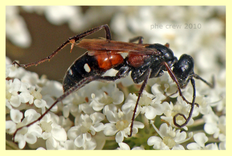 Il pattern della colorazione corrisponde a mio avviso con Cryptocheilus elegans, specie di cui non sono mai riuscito a trovare descrizioni esaurienti come molti altri Pompilidae.