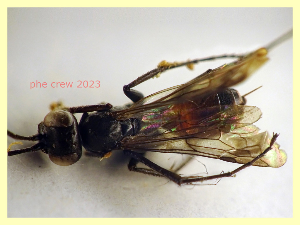 ...che paradosso !!..i Pompilidae sono noti predatori di Ragni, questo l' ho trovato su una infiorescenza morto rinsecchito tra le fauci di un giovane Thomisidae, che appena mi ha visto avvicinarmi me lo ha ceduto :to: . Ho trovato delle chiavi quelle di M.C. Day, ma sono un po vecchiotte e inglesi...e non so nemmeno se siano ancora valide...