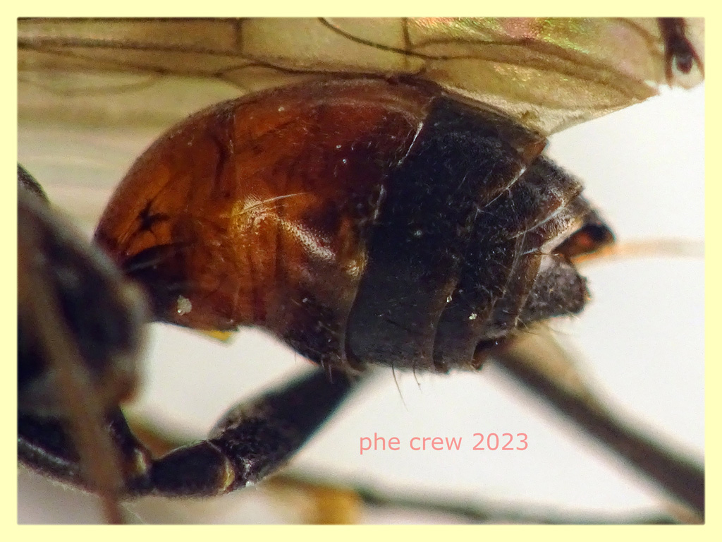 ala infusa con macchia ialina appena fuori le celle in punta (appena accennata in questo esemplare)