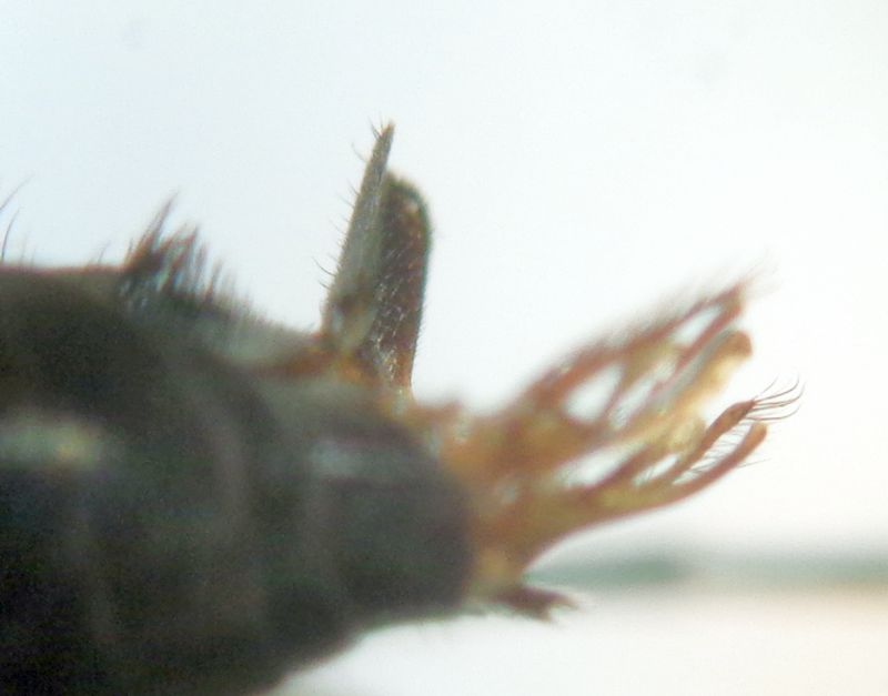 - sternite 6 con tre linee di lunghi peli neri irti, due ai lati e uno sulla mediana, più debole.