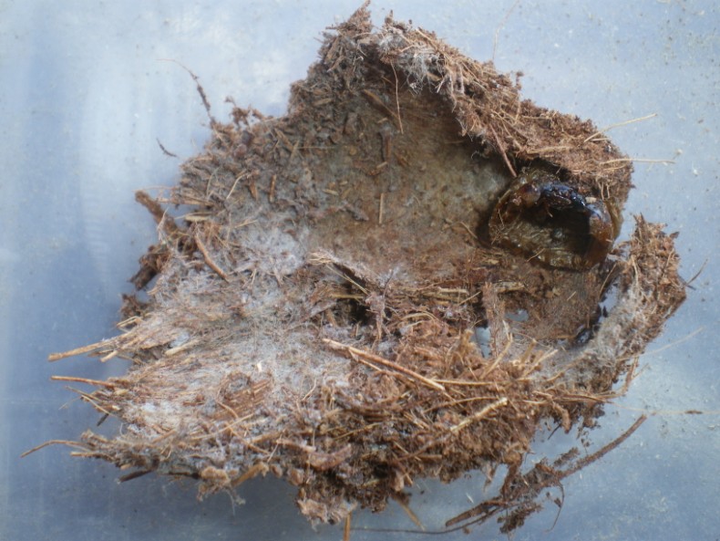 questa volta mi sono portato via una brattea fogliarie morta dove alloggiare le due larve, ed ho raccolto anche tre bozzoli ed una pupa (che verranno immediatamente soppressi allo sfarfallamento :dead: ).