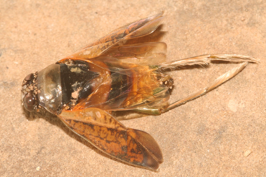 Ho trovato quest'insetto morto sull'aia dell'agritursmo dove lavoro. Mi sembra un omottero, ma non ricordo di averne mai visti con questa colorazione....