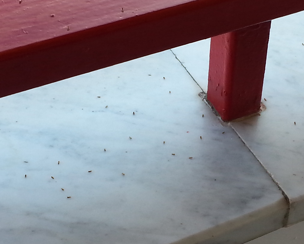Inizialmente li abbiamo trovati solo sul marmo del balcone e sulla ringhiera. Ci siamo un pò preoccupati per i mobili nuovi perchè pensavamo fossero animali del legno ma non sembrano interessati ad i nostri mobili che, tra l'altro, di legno hanno ben poco visto che le casse e le porte sono in truciolare. :D :D Comunque con ottobre e l'arrivo dei primi freddi sono diminuiti abbastanza.