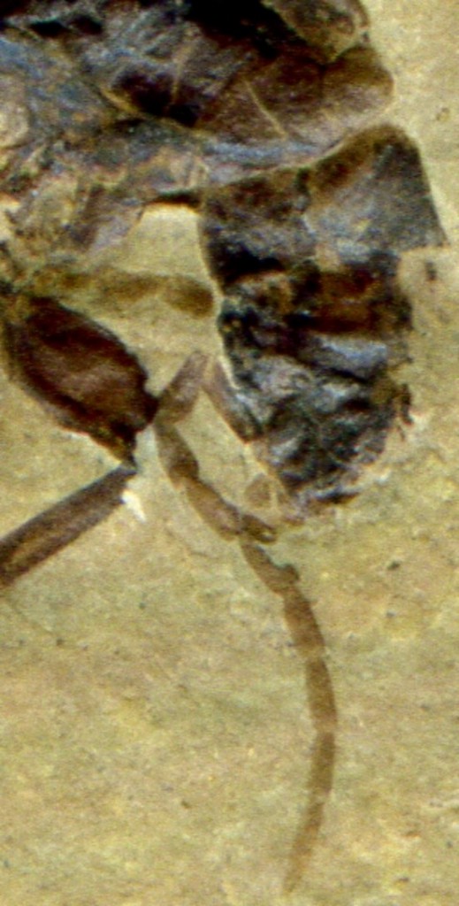A livello di specie sicuramente non lo identificheremo mai, a meno che non volessimo descriverlo. Gli esemplari così antichi vengono quasi sempre descritti come specie nuove (e generi nuovi, e spesso anche tribù e sottofamiglie). Devo dire che alcuni lavori su insetti fossili (mi limito ai Buprestidi, unico gruppo su cui ho lavori del genere) mi sembrano a dir poco fantasiosi, perchè per specie chiaramente appartenenti a generi ancora esistenti e ben rappresentati vengono quasi sempre inventati generi nuovi. La determinazione a livello di specie è poi sempre molto aleatoria.