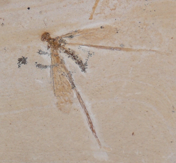 Ho in collezione questo raro insetto fossile un neurottero (1,5 cm il corpo) del gruppo dei Nemopteridae.