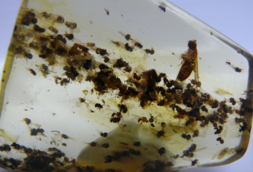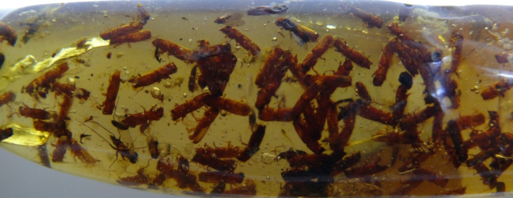tutti insieme, in questo caso intrappolati nel copale (come i coleotteri),