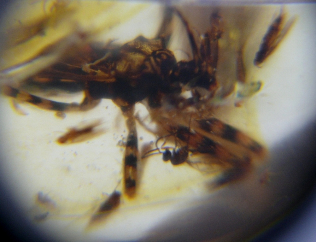 Ho in collezione questo campione di copale e al suo interno ho trovato questo emittero della famiglia dei Reduviidae (1,5 cm).