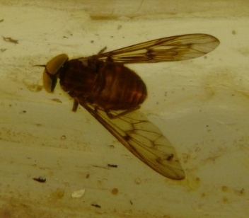Ho in collezione questo campione di copale e al suo interno ho trovato questo bel dittero (2,4 cm).