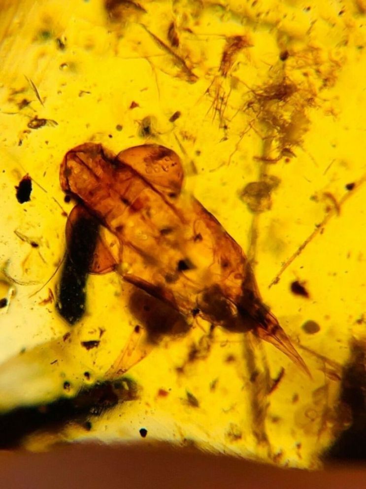 In questo campione d'ambra è presente uno strano fossile che per un po' di tempo