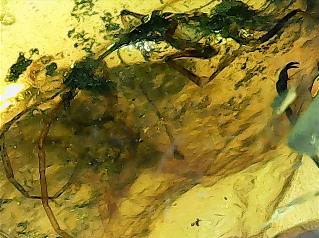 Buongiorno a tutti, dopo un periodo di inattività dovuto a vari impegno scolastici si ritorna col botto. questo reperto è un esemplare ben conservato di Haidomyrmex scimitarus, una formica appartenente ad una sottofamiglia estinta distinta da tutte le altre formiche per avere mandibole a sviluppo verticale ed estremamente modificate. Nello stesso pezzo di ambra sono anche presenti un acaro, un pezzo di coleottero e un'altra formica, una Sphecomyrminae, ancora da determinare con certezza e che verrà postata qui appena lo farò.