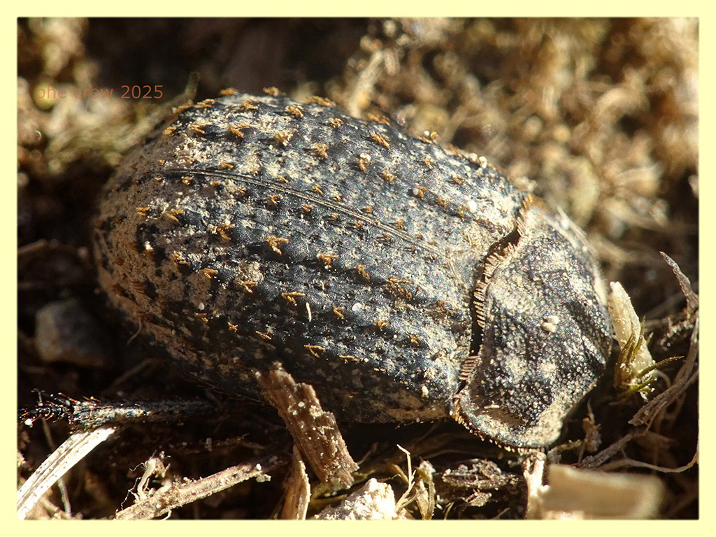 Ciao a tutti. Da quello che si vede penso si tratti di Trox litoralis Pittino, 1991. Lo stesso autore ha rivisto la situazione delle varie ssp. di Trox hispidus ed in Italia è presente Trox niger Rossi, 1792