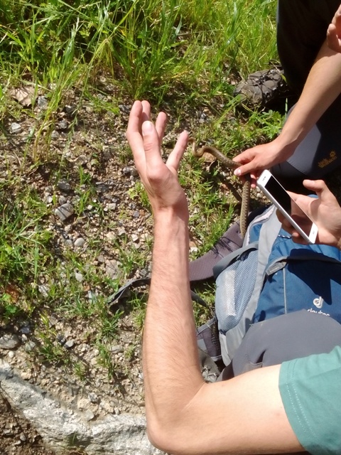 Altre digressioni dall'entomologia: un bel maschio di ramarro; l'orchidea Anacamptis pyramidalis e un biacco che ha avuto la sventura di trovarsi in mezzo ad un gruppo di curiosi