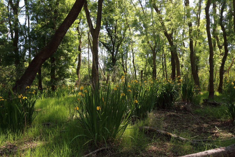 Formazione pura a Frassino ossifillo con sottobosco di Giaggiolo acquatico nel pieno della fioritura