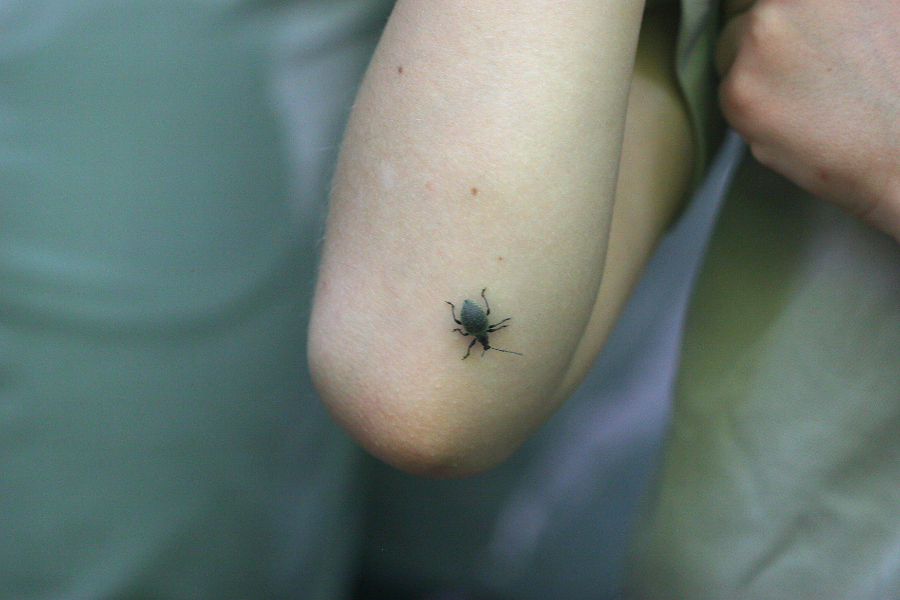 Stava sbirciando nella mia retinata ed un Othiorhynchus, calmo e placido, gli è andato a finire sul braccino.