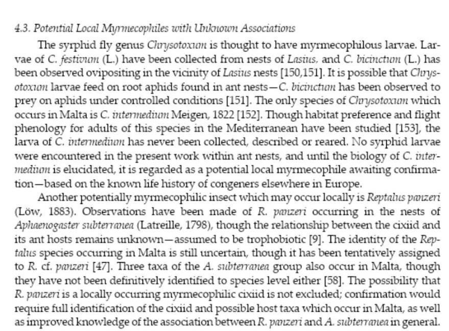 Conoscevo il tuo post su naturamediterraneo, e anche il lavoro sulle specie mirmecofile delle isole maltesi, quest’ultimo trovato seguendo altre vie, dato che non sono iscritto al gruppo facebook “ditteri italiani”. Sarò un vecchio barbogio brontolone, ma mi rifiuto fermamente di frequentare social network, per cui niente facebook, twitter, instagram, tiktok e quant’altro possa esistere di simile a mia insaputa.