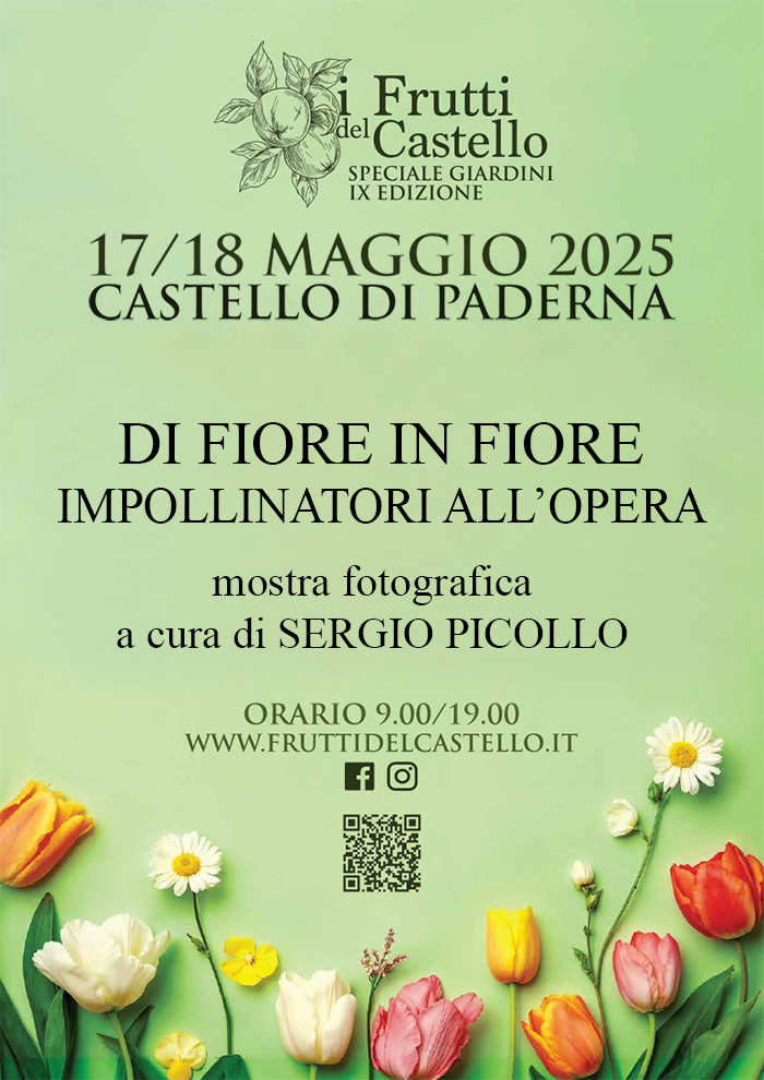 Sabato 17 e domenica 18 giugno dalle 9 alle 19 nell'ambito della manifestazione "I frutti del Castello: speciale giardini"al Castello di Paderna (PC) sarà visitabile una riedizione della mia mostra fotografica "di fiore in fiore: impollinatori all'opera" . Si tratta di una cinquantina di fotografie di grande formato (fino a 100x70) di lepidotteri, imenotteri, ditteri e coleotteri fotografati sulla flora del parmense. Per chi fosse interessato trovate le info sul sito dell'evento.