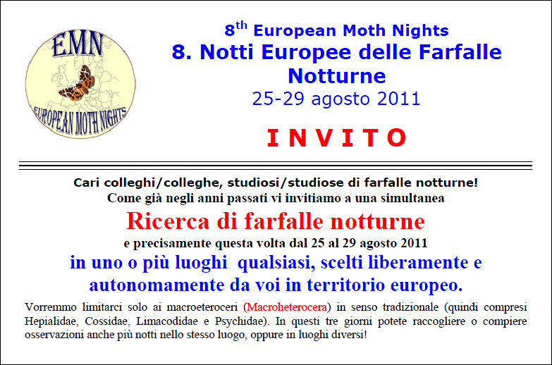 | Oggetto del messaggio: | 8e Notti Europee delle Farfalle Notturne 25-29 agosto 2011 |