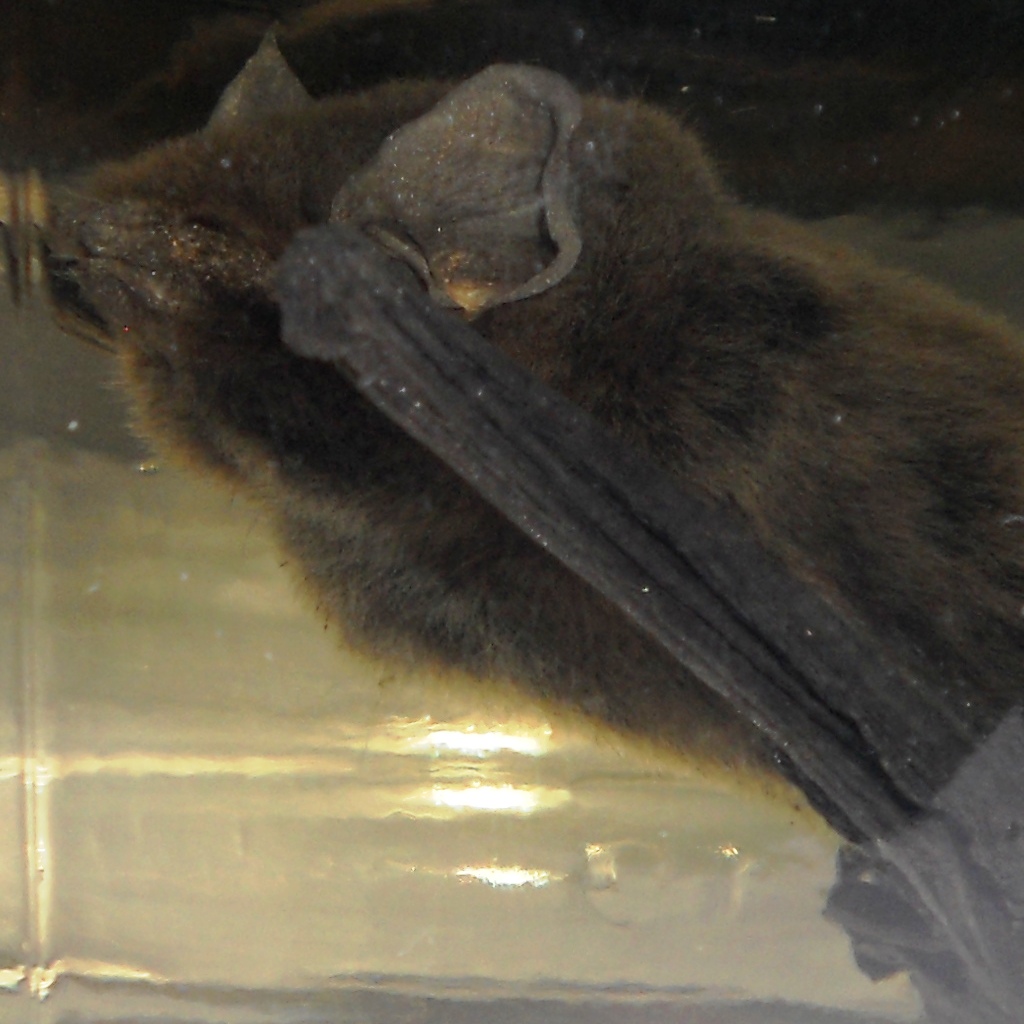 "dalle foto non si capisce molto, ma si tratta di un Pipistrellus. La specie diventa più difficile non potendo osservare caratteri più diagnostici e alcune misure utili, ma dall'aspetto del trago, dell'orecchio, dal colore piuttosto scuro l'impressione è quella di un Pipistrellus pipistrellus/P. pygmaeus, ma è solo un impressione."