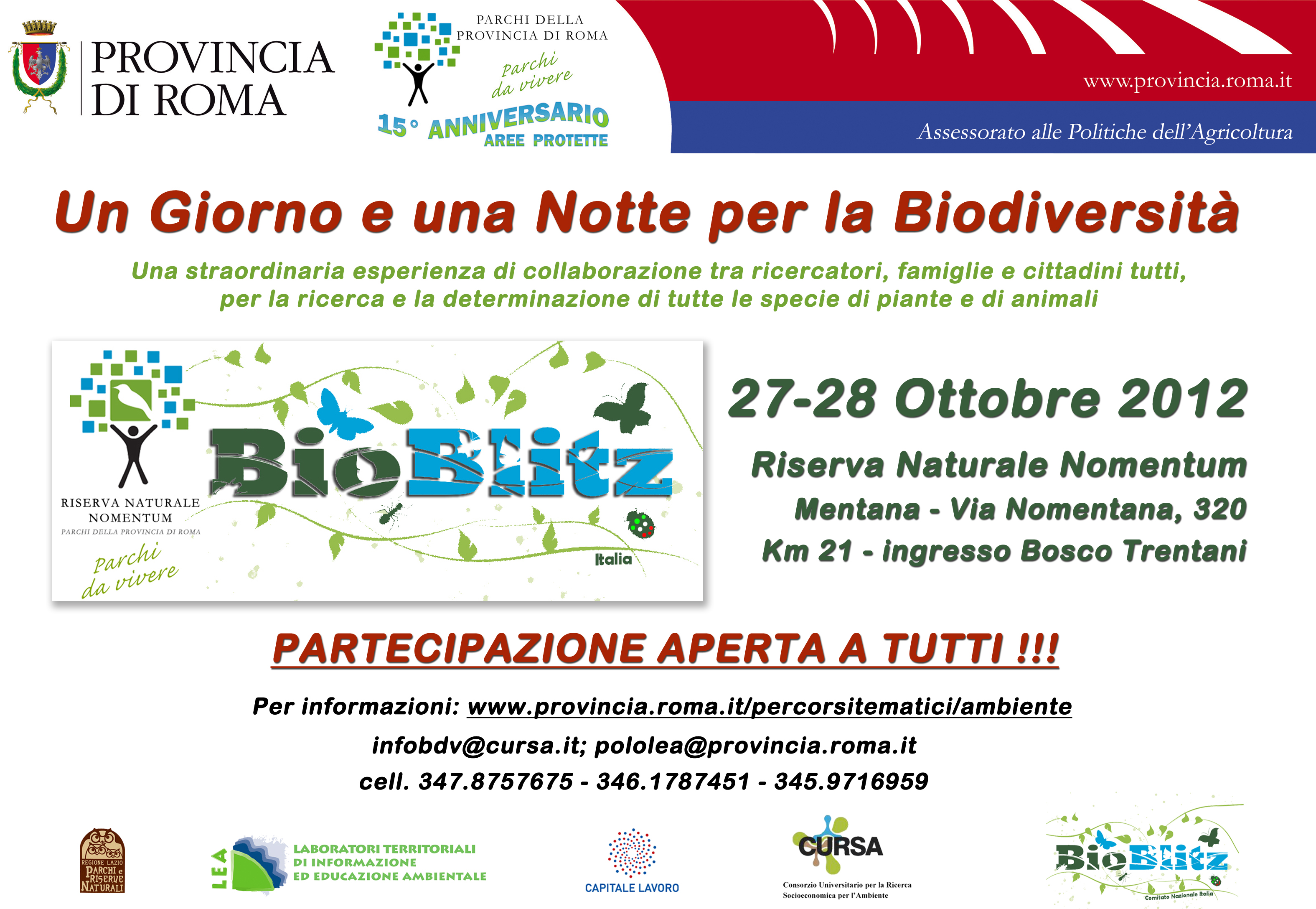 L'evento consiste, in poche parole, in una ricerca della biodiversità per 26 ore consecutive, dalle ore 12 di sabato 27 alle ore 15 di domenica 28 ottobre p.v.. La location è la Riserva Naturale di Nomentum, vicinissima a Mentana.