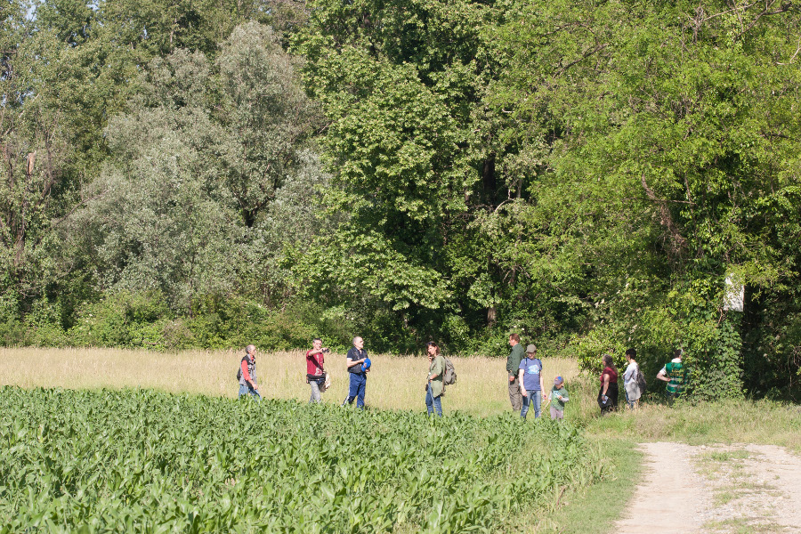 Verso le cinque-cinque e mezza (e chi guarda l'orologio?), propongo di spostarci verso il fiume, per una sbirciatina ad un ambiente completamente diverso. Non è lontanissimo: più o meno 500 metri. Circa metà comitiva è "cotta" (anche perché siamo stati spesso sotto il sole) e rientra in sede (attirati dal bar?). I più temerari si avviano, mentre Fabio ed io ci concediamo una birretta che furbescamente avevo messo in macchina. E' ancora fresca Ci avviamo verso il fiume e, ovviamente, nessuno si è accorto della nostra breve ... ehm ... "assenza" Si formano due-tre gruppetti. Uno, non ancora pago delle catture, è già in caccia ai bordi del bosco. l'altro si ferma nell'incolto, evidentemente incuriosito da grilli, cavallette, cicaline & Co. Il terzo se la prende un po' più comoda Queste le poche e brutte foto che ho fatto io. Segue ...