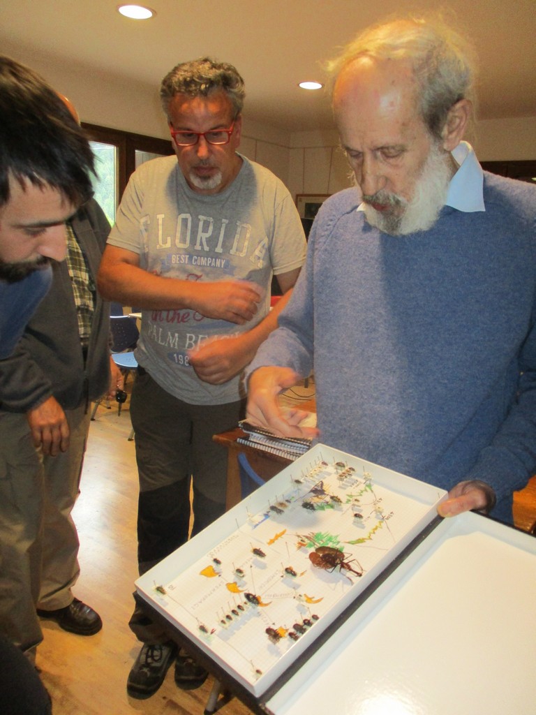 Secondo giorno, ancora foto del Prof. Bogliani: Dopo la lezione mattutina sui Carabidi fatta da Achille Casale, si esce... Per un po' mi dedico ancora ai Bembidini, mentre Toledo cerca ancora i suoi acquatici... Altri raccolgono cerambicidi sotto la corteccia di ceppi di peccio: Dopo non molto riprende a piovere e si torna Due fortunati hanno trovato due Carabus (mi pare depressus e hortensis), io mi accontento di un Leistus nitidus Determinazione dei Carabidi, seguiti da Casale  Alla fine, Casale ci mostra una bella scatola didattica sui Carabidi in relazione ai diversi habitat