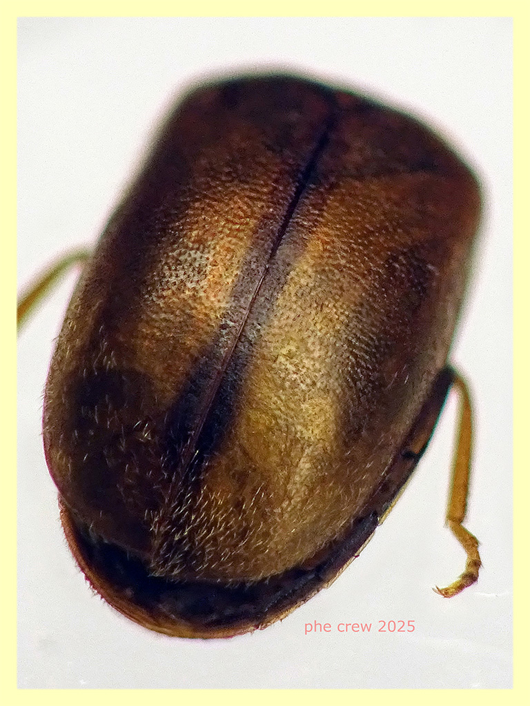 ...esemplare malconcio morto in pozzanghera di zolfo. Poi con una manovra azzardata lo stavo per disintegrare del tutto Sono quasi riuscito a tirar fuori tutte le parti degli ultimi sterniti...ma si riconosce bene (per fortuna e' abbastanza caratteristico) la specie Contacyphon phragmiteticola che adesso si dovrebbe chiamare Contacyphon laevipennis. La misura la si vede nella prima foto col righello. ![]() |