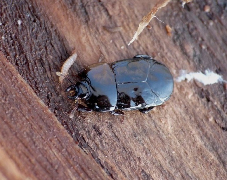 Il fatto che questa specie di Histeridae sia così liscia, potrebbe essere un adattamento per cercare di sfuggire agli acari (a cui gli acari hanno reagito sviluppando cuscinetti specifici), oppure sarà solo un adattamento per infilarsi più facilmente sotto le cortecce (come del resto la forma appiattita)?