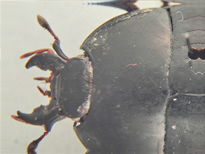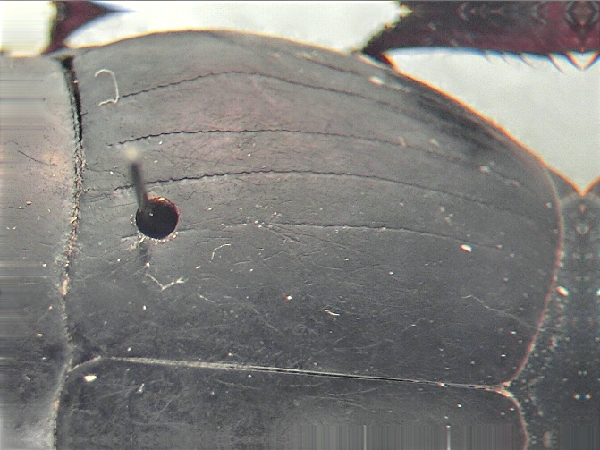 La superficie del pronoto appare liscia ed esente da punteggiatura visibile (appena percettibile qualche punto finissimo) e da qualsiasi altro rilievo