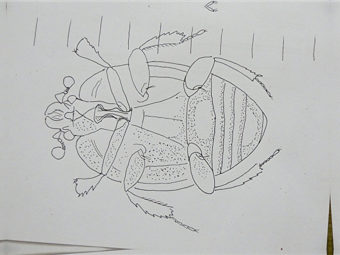 Nel disegno sono indicate le zone di quest’ultimo prive di punteggiatura (alcune centrali sull’addome, alcune fasce che accompagnano la segmentazione sternale).