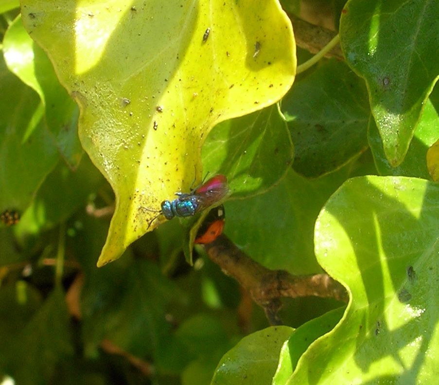 Riesumo questo vecchio post per aggiornarlo con qualche altra foto. Nella seconda metà di giugno sono riuscito, quasi quotidianamente, a effettuare un paio di ore di appostamento nell'attesa che i crisidi giungessero alla mielata artificiale da me spruzzata su un arbusto di edera che ricopre un vecchio muretto a secco nella campagna Ascianese. In particolare si tratta della siepe che è ritratta nella quarta foto di questa discussione. Salvo rari casi le ricerche le ho effettuate dalle 14.00 alle 16.00 nel bel mezzo del caldo di Scipione I risultati sono stati a mio avviso molto soddisfacenti e cercherò di inserire di seguito le immagini delle specie più interessanti (ovviamente le inserirò anche nella sezione sistematica). In media ho raccolto una cinquantina di esemplari al giorno con una elevata biodiversità (circa una ventina di specie differenti); molto più di quella riscontrabile negli stessi luoghi con i piattini gialli. A luglio ho dovuto interrompere le ricerche per portare i bimbi al mare e, al rientro, ho provato a verificare la nuova situazione; molti meno crisidi ma, soprattutto, quasi tutti appartenenti alla stessa specie ( Chrysis grohmanni krkiana Linsenmaier, 1959). Alcune immagini dei alcuni frequentatori della siepe.