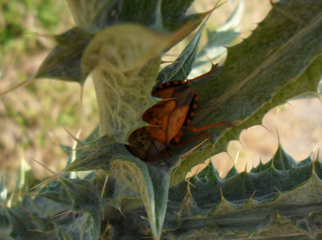 Nelle ascelle formate dai rami e il fusto erano comunissimi questi Pentatomidi dal maschio arancione vivo e la femmina arancione sbiadito.