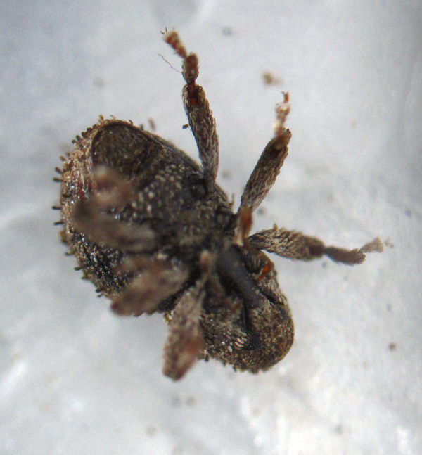 un Acalles, di cui ho fatto 3 foto, in cui si vede una curiosità nella specie: nlla parte inferiore c' è una cavità in cui l'nsetto può adagiare il proprio rostro una volta che si chiude a "pallina" ... forma di difesa? forma di adattamento al clima freddo? non lo so. Rinvenuto singolarmente nella mio materiale da vaglio, per il momento.