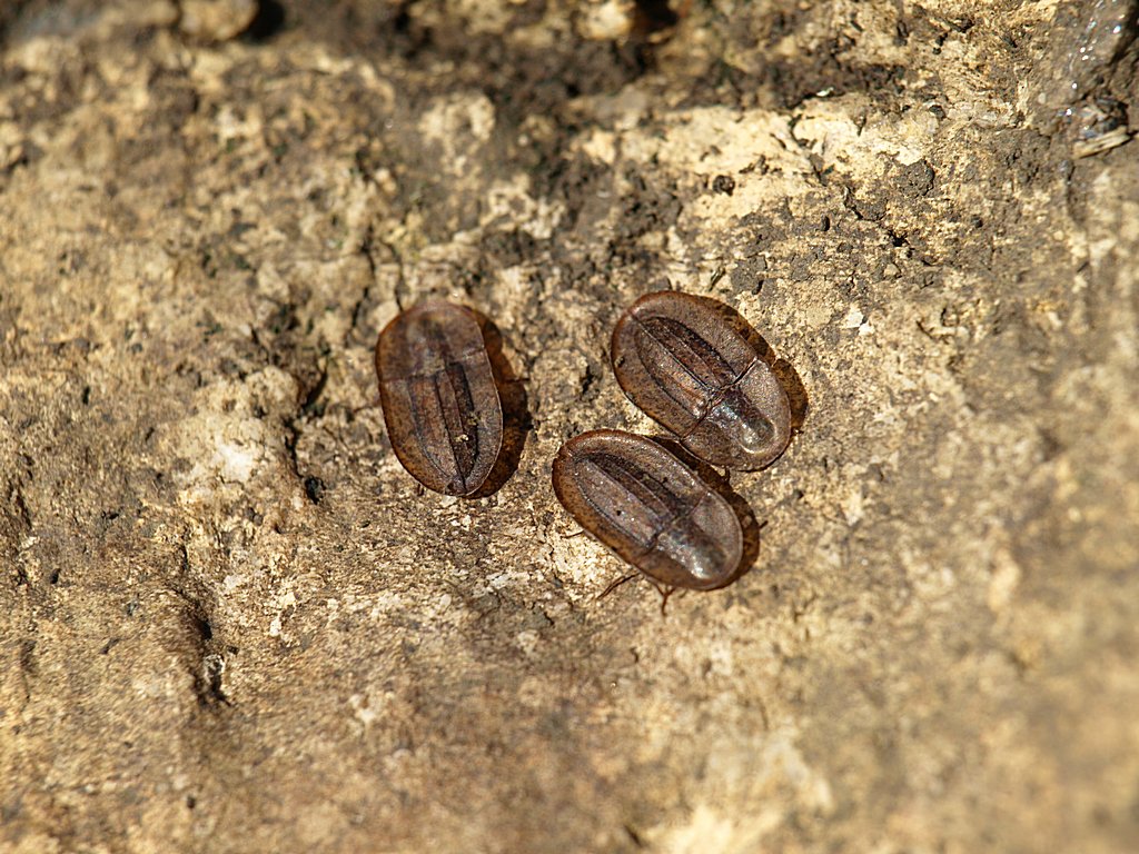 Sotto la prima pietra che sollevo vedo un affarino minuscolo che si muove lentamente sulla superficie che era a contatto col suolo. Ho pensato: sarà il solito collembolo o ragnetto minuscolo, comunque, facciamogli una foto che non si sa mai.