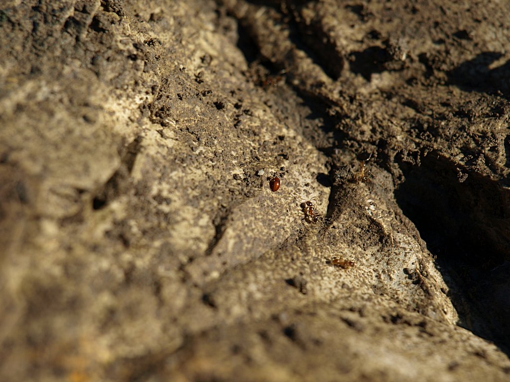 Lì vicino c'è una enorme lastra di pietra, e con un terribile sforzo riesco a rivoltarla. Putroppo sotto non c'è molto, a parte le formiche e qualche Carabidae come quelli di prima.